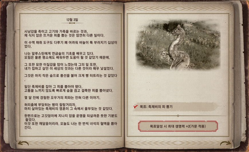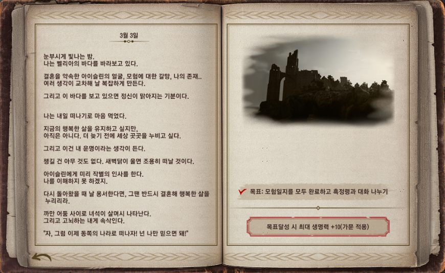 | [검은사막] 이고르 바탈리의 모험일지 6권 - 목표를 위한 발판 (0) | 2019.04.28 |
