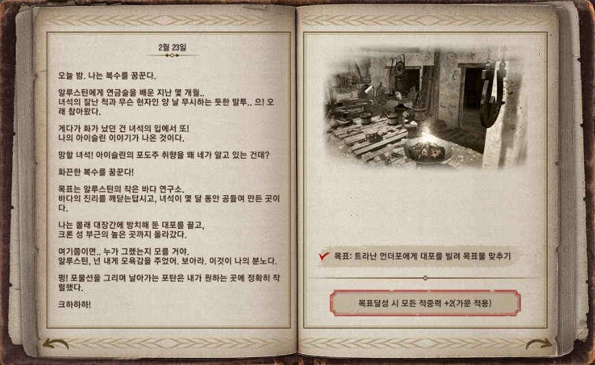- 트라난 언더포에게 대포를 빌려 목표물 맞추기가 파티 상태에서는 진행 및 완료가 불가능하다는 경고 문구 추가 (2021.02.09)