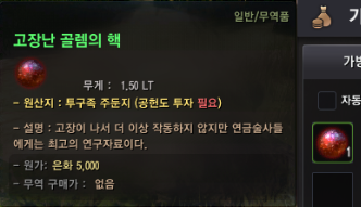1. 고장난 골렘의 핵 판매하기 - 몬스터 드랍 무역품인 '고장남 골렘의 핵'을 상점에 판매해야 하는데요. 투구족 주둔지의 별사탕 몬스터에게서 확정적으로 얻을 수 있다고 해요.