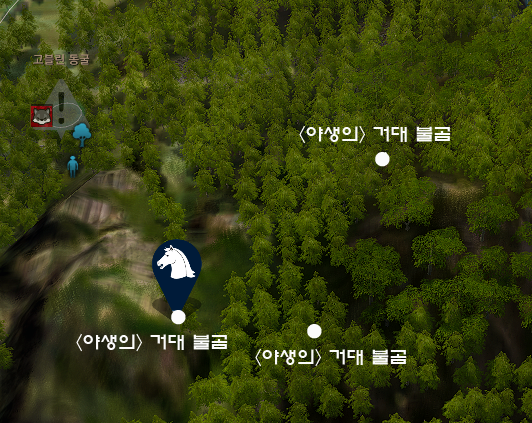 아무래도 직접 만들어야 할 분위기라서, 거대 불곰이 확정적으로 '상처 난 가죽'을 준다는 말을 듣고 발레노스 산맥으로 갔어요. 예전에 어떤 이벤트를 할 때, 고블린 동굴 남서쪽으로 가까운 거리에 거대 불곰 3마리가 젠 되는 곳이 있던 기억이 있었거든요.
