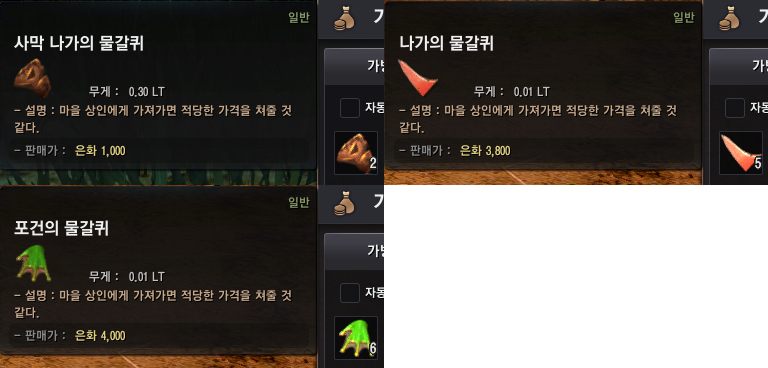 | 사막 나가의 물갈퀴 | 포건의 물갈퀴 | 나가의 물갈퀴 |