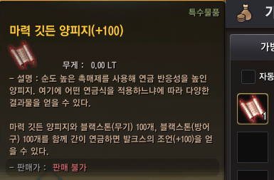 완료하면 자동으로 흑정령에게서 강한 모험가가 숨겨둔 비밀 의뢰를 진행하며 '마력이 깃든 양피지(+100)' 을 얻을 수 있어요.