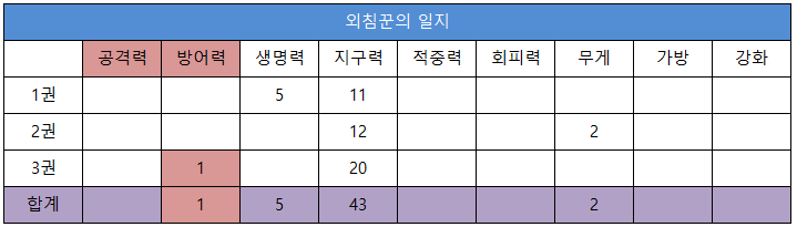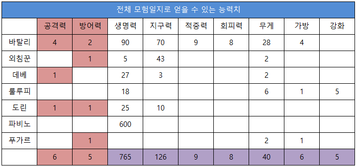 개별 모험일지별 적용 능력치는 다음과 같아요.