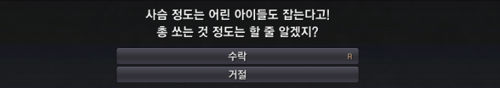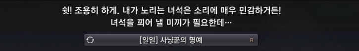 내용 - 잡초 10개 건네기(0/10), 수렵용 손 화포로 마녀의 사슴 수렵하기