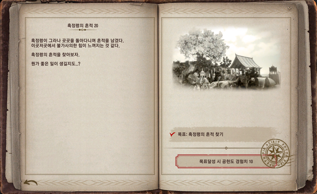 2019년 6월 5일 업데이트로 6월 25일(수)까지 3주간의 기간 한정 이벤트인 모험일지 - 흑정령이 다녀간 흔적이 추가되었어요. 각 권마다 20곳의 흑정령의 흔적을 찾아야 하는 모험일지 형태의 이벤트예요.