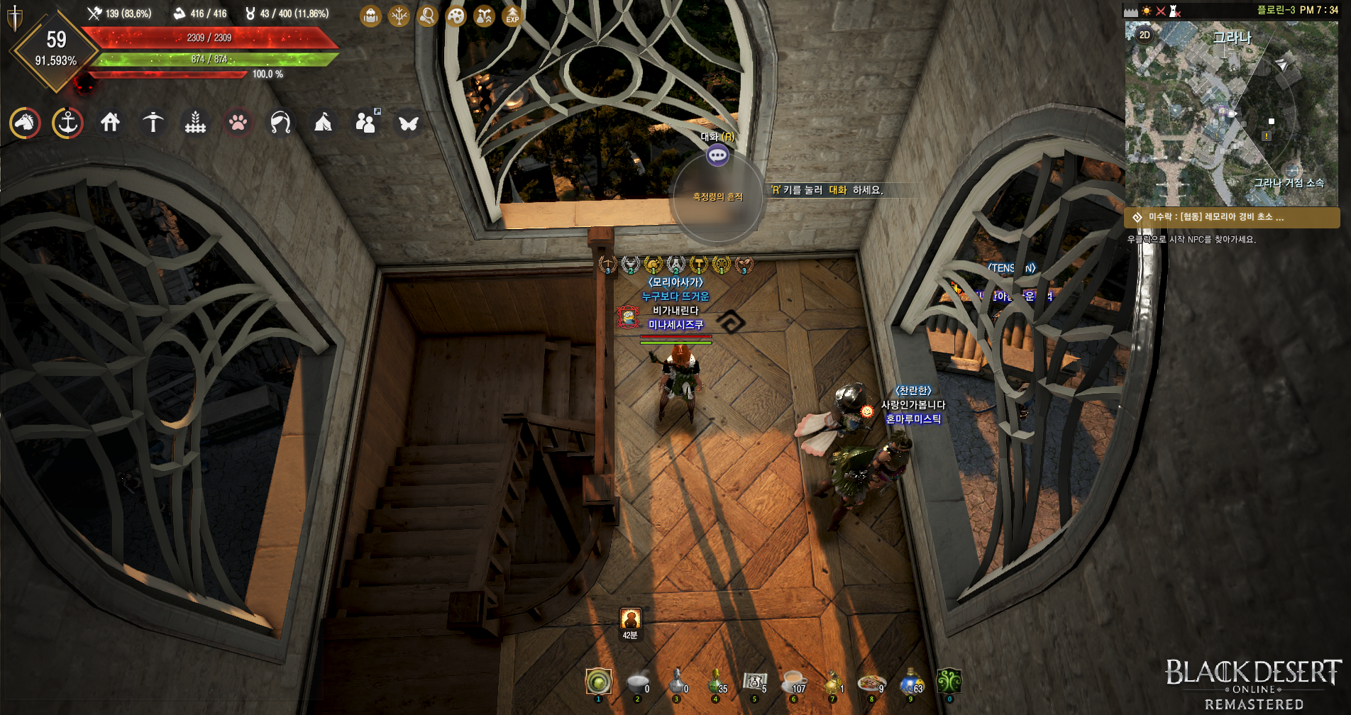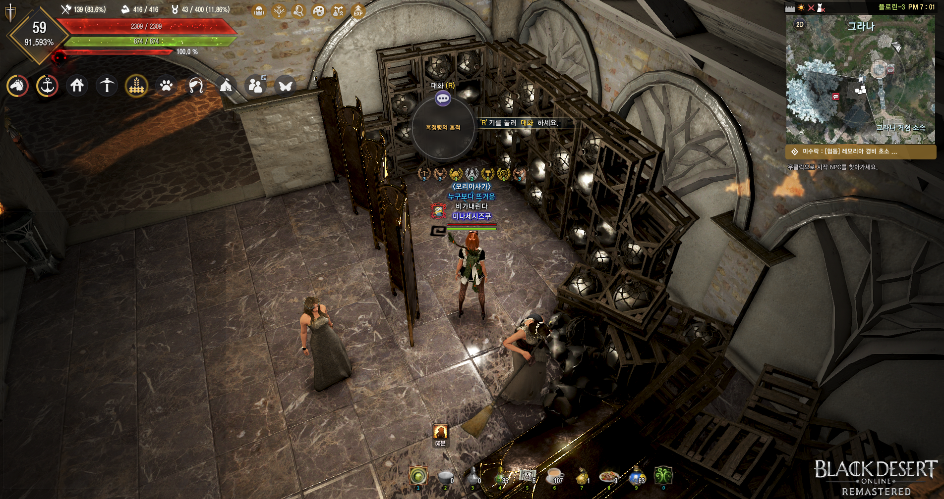 14. <흑정령의 수련> 제미 드리커 오른쪽 탑 2층에 무릎 꿇은 NPC 아래
