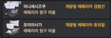 - ‘개량형 에페리아 경범선’과 ‘개량형 에페리아 호위함’은 기존의 에페리아 경범선 및 에페리아 호위함과 같은 능력치를 가지고 있지만, 일제사격 항해 기술을 사용할 수 있습니다.