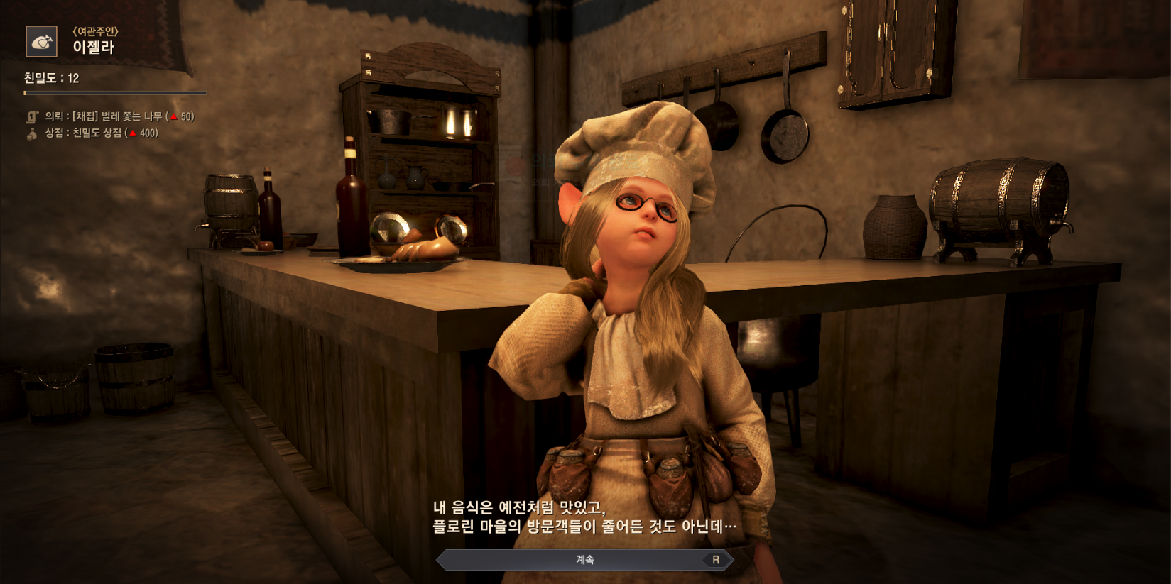 | 3 | 청결이 가장 중요해 | 이젤라 | 공헌도 경험치100, 요리 경험치, 바람의 발자국(버프), 이젤라 친밀도10, 전투 경험치 |