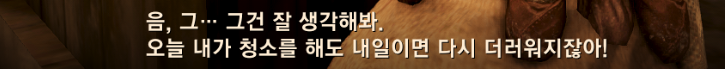 내용 - 여관 지붕 수리하기, 여관 지붕 수리하기, 여관 내부 청소하기, 여관 내부 청소하기, 여관 내부 청소하기