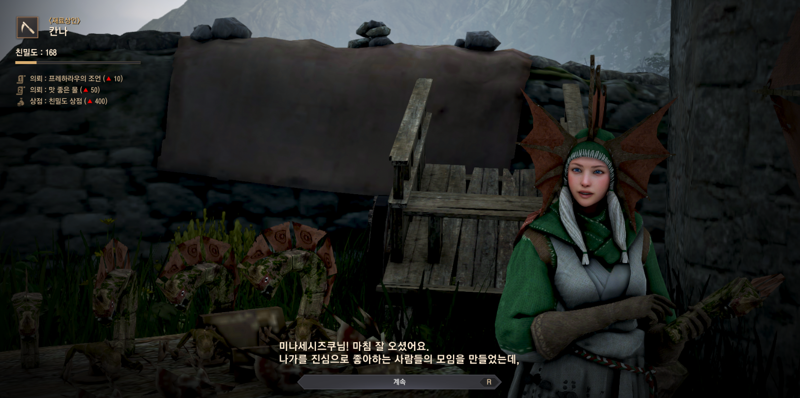 의뢰 조건은 클래스 제한이 없는 40 레벨 이상의 캐릭터이고, 글리시 마을의 <재료상인> 칸나에게서 시작할 수 있는 나가를 이해하는 과정에 대한 연속 의뢰들이에요.