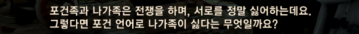 내용 - 나가족을 괴롭히는 포건족 50마리 처치하기(0/50)
