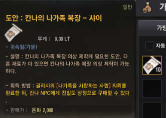 [검은사막] 칸나의 나가족 복장(샤이) 도안 연속 의뢰 - 나가족 복장